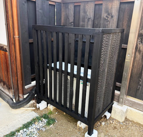 阿智まち広場のエアコンの室外機にカバーを設置しました