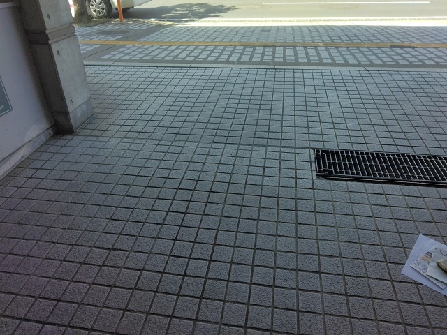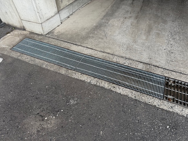 そこで幅(隙間)の狭いグレーチングを使用して歩行者が躓きにくい様に配慮して設置しました。