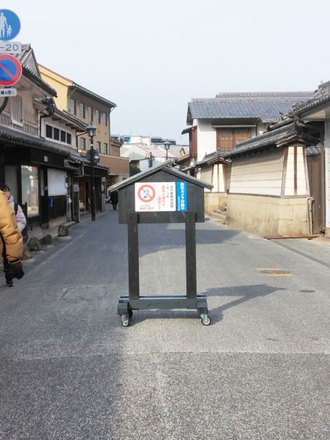 倉敷美観地区の道路に交通規制について注意喚起する移動式看板を設置しました